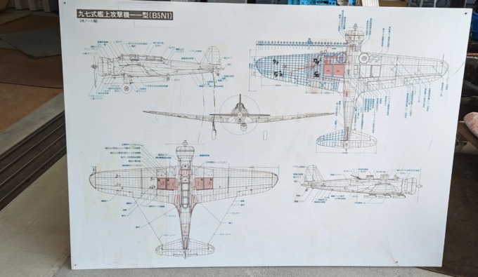 建設中のsoraかさいに入ると目の前に九七式艦上攻撃機の模型がありました。
