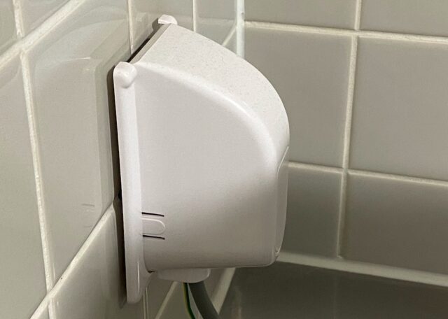 このコンセントカバーを取り付け、水がかかることを防ぐことが出来ました。